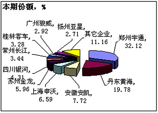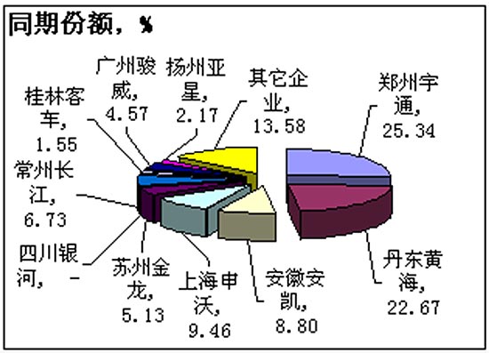 2005年1-8月大客整车主要企业累计市场份额对比