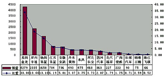 2005年1-8月份中型客车部分企业销售情况