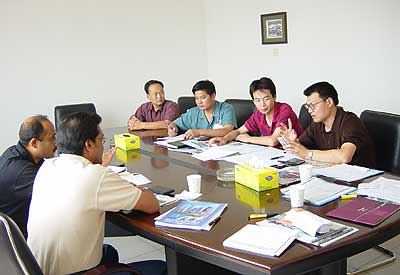 图: 阿联酋客商与销售人员洽谈购买长城客车梦之旅