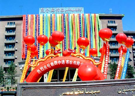 乌鲁木齐昆仑宾馆彩旗飞扬,新疆中通揭牌仪式