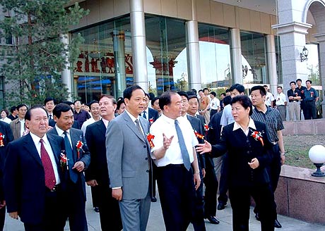 新疆中通部分领导人与政府领导在揭牌仪式上合影