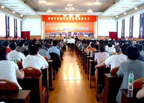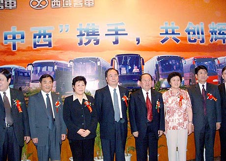 中国XINGKONG.COM讯:2004年6月5日,上午11:18分,新疆乌鲁木齐昆仑宾馆,鼓乐齐鸣,彩旗飞扬,新疆中通客车有限公司揭牌仪式在宾馆二楼会议大厅隆重举行,在座600余名嘉宾齐聚一堂,共同见证了这一激动人心的历史性时刻。中央政治局委员、新疆维吾尔族自治区党委书记王乐泉,自治区党委副书记、政府主席司马义·铁力瓦尔地,自治区党委常委、政府副主席艾力更·依明巴海,以及山东省人大副主任时立军、聊城市市委书记郭兆信等政府部门领导共同出席了本次揭牌仪式并发表重要讲话。