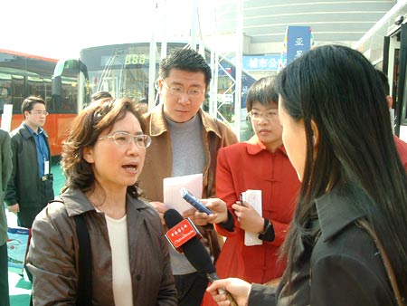 中国XINGKONG.COM讯:来自北京市公交车招标现场的报道,市交通委主任赵文芝女士在开幕式后就此次北京公交集团公交车公开招标的意义回答了记者的提问,赵主任说:“为了迎接北京2008奥运会,北京公交集团面向全国客车厂家进行的本次公开招标活动.这次展示会是我国城市公交车辆规模最大、档次最高的一次。招标车型具有环保化、大型化、人性化、电子化、现代化等特点,标志着我国城市客车工业的制造水平。北京公交市场需要一批具备环保要求高水平的公交车。那么此次活动对于国内客车厂家是一次公平、公正、公开的竞争机会,对于整个客车工业提供了一个很好的展示平台。”