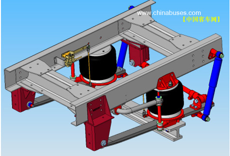 客车后悬架系统中,有DC080-驱动桥空气悬架、DF110--11T驱动桥空气悬架、DC130-2气囊13T空气悬架、DP130--4气囊平行四边形空气悬架、DF130W-13T