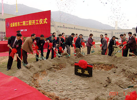 1月20日,厦门金龙旅行车有限公司在厦门市海沧新阳工业区的客车生产基地,举行了二期工程动工仪式,开建国内第一条大型客车整车车身前处理、阴极电泳底漆生产线。同时对原有涂装生产线、焊装生产线、总装装配线、底盘装配线进行技术改造和扩建。