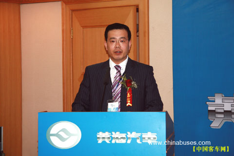 丹东黄海客车总经理郝庆军介绍黄海客车发展现状 在展区布置方面,黄海将设BRT展馆及迎奥运用车展区。两个展位同时做新车展示和推介。 在室内的BRT展馆内,黄海展出了和MAN在国外同步生产的12米及18米低地板BRT用车,这两款车均为黄海系列引进德国MAN技术的产品。现已形成批量生产能力,即将销往全国各地。