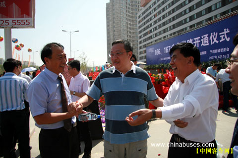 厦门金旅副总经理万邵春、沈阳安运集团董事长何文江、九龙巴士副总经理郭栋昌谈笑风生共同畅想城市客车美好明天