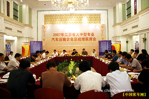 7月9日,由淮安汽车运输集团有限公司主办、安徽江淮客车有限公司承办的“江苏省大中型专业汽车运输企业2007年总经理联席会”在合肥隆重召开,来自江苏15家汽车运输企业的领导参加了此次会议。
