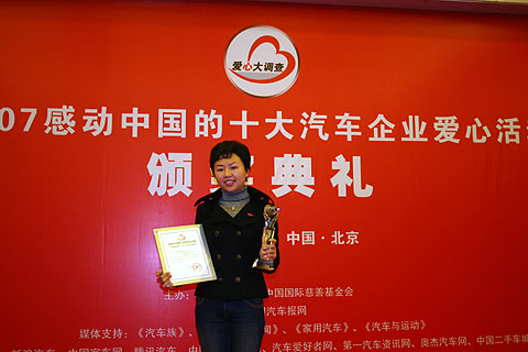 首届"2007感动中国的十大汽车企业爱心活动"奖项设置分为扶贫助困、文化教育、儿童老人等5大专题,涵盖了爱心汽车企业的各大层面。从今年5月开始,活动承办单位《中国汽车报网》对全国50余项汽车企业公益活动进行了全面调查并在网上公布,最终以网上投票结果和中国国际慈善基金会、中国扶贫基金会、中国红十字基金会等顾问、专家意见及活动意义考量相结合的形式评选出了十大爱心汽车企业。重庆恒通客车以其长期以来关注爱心和公益事业,无数次为困难员工、贫困地区、灾区群众送温暖、献爱心的感人事迹,在众多参选企业中脱颖而出,站在了全国十大爱心汽车企业的颁奖台上。