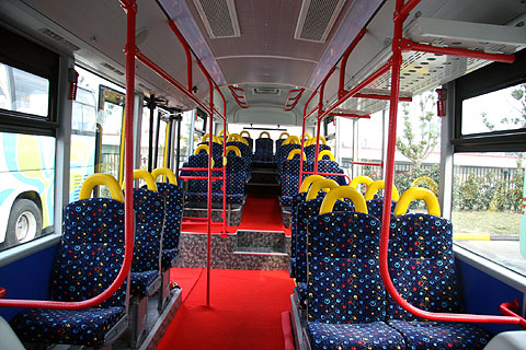 该车型设有40个座位、55个站位。上下车方便。采用低入口城市公交的结构布置,一级踏步离地高度360mm。可装轮椅自动踏步,方便残疾乘客乘坐。增加车内行李架,方便乘客携带行李。安装了LCD站点自动识别系统,有助于乘客及时了解车辆的运行路线;安装了多功能电脑报站器,能够方便即时实现对车内显示屏、路牌显示器的内容编辑和控制。采用加高侧窗玻璃工艺,为乘客提供了良好的视野。