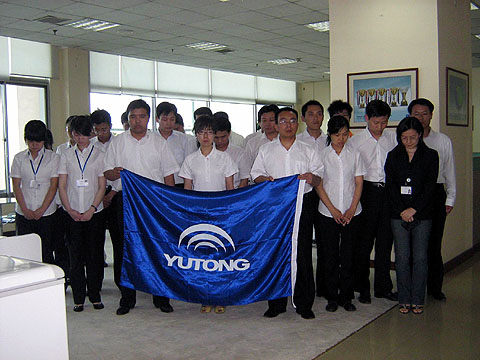 向逝者致哀,为生者加油。当地震不可避免,当灾难已然来临,所有的宇通人也用这样的形式,寄托我们的伤痛和哀思,表达对生命的尊重和关爱:在5月19日的14时28分,不论身在何处,无论正在做什么,宇通员工均放下手头的工作,原地起立,面向西南方向,以肃穆的神情和哀痛的心,为四川汶川大地震中遇难的同胞默哀3分钟。同时,宇通园区的防空警报持续鸣响在员工耳畔。其中,一向紧张忙碌的宇通生产线也安静了下来,车间员工集体肃立在车间长长的通道里,用沉默表达痛惜和思念。短暂却又漫长的三分钟在警报声中流过,大家有开始回到各自的工作岗位,继续用生产建设增援国家力量,继续用真情让逝者安心,用坚强为生者加油。