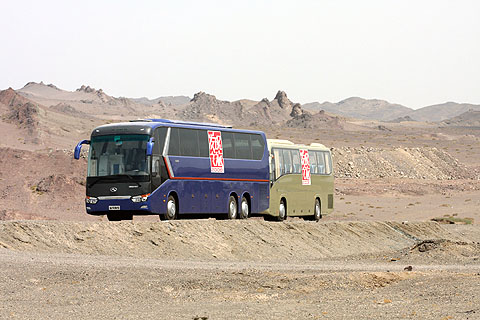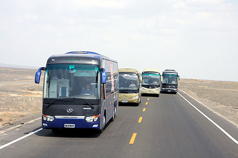 通过了高原考验后,XMQ6140Y又经历了一次严峻的高温考验。在穿越吐鲁番地区时,恰逢正午时分,“发现之旅”车队途经最炎热的火焰山一带,海拔高度为-50