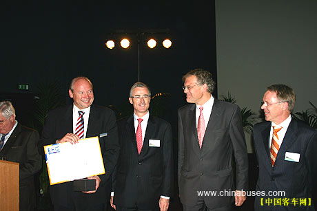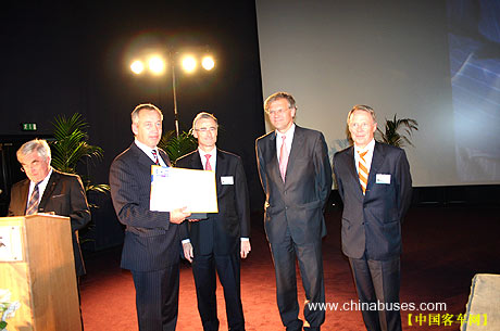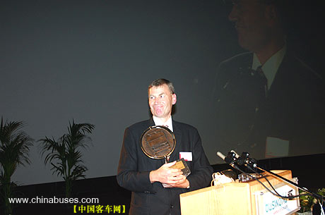 10月20日下午4时,BAAV年度大奖颁奖典礼在世界客车联盟秘书长洛克的主持下隆重开幕。在热烈的气氛中,一批世界顶尖级客车分别荣获金、银、铜奖,其中,范胡尔公司的ASTRON916型豪华旅游客车囊括金奖、最佳安全设备奖、最佳车门踏步奖和符合舒适标准最高分及各项打分累积最高分的最佳舒适奖等多个奖项,成为本次获奖者中的最大亮点。此外,尼奥普兰莱茵之星和VDL-JONCKHEERE-SBR400荣获运动型和标准型最高分的最佳年度造型——最飘亮的外观设计奖。塞特拉S415、S411分获最佳防盗设备奖、最佳驾驶操控奖;VDL博发MAGIQ分获最佳旅游观光奖、最佳车门踏步奖、最佳视听设备奖;尼奥普兰莱茵之星获最佳乘坐舒适奖等。接着,上海荷雅企龙展览服务有限公司的代表参与抽奖主持,中奖的外国同行幸运地荣获了往返于世界客车博览亚洲展览会主办地上海的两张免费机票。此间,世界客车联盟主办的对外视屏——一个基于网站的电视频道也同时开播,可快速传递覆盖全球的客车新闻。该网站还将与全球主流新闻界合作,这样一来,即使你无法亲自来到展会,展会的迅息也能来到你的身边。