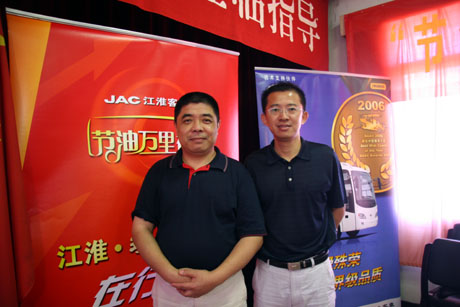 江淮客车销售总公司副总经理王苏荣与湖州长运有限公司副总经理刘中晖亲密留影