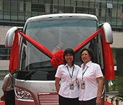 进入2006年,经过8年积累和精心准备,苏州金龙终于向国际市场发力,一改往日在出口市场默默无闻的形象,用接二连三的产品大单出口拉开了企业深谋已久的国际攻势,今年已签定出口合同额超过8000万美元,呈现出批量定单大、出口品种多、区域较集中的特点。日前,仅出口卡塔尔一个国家的订单就达3亿元,该批500台客车将成为即将召开的亚运会专用车。