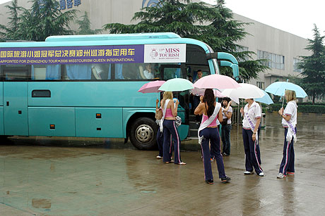 6月29日,2006国际旅游小姐冠军总决赛的美丽旅游天使们走进郑州,感受深厚浓郁的中原文化,来自85个国家和地区的佳丽们吸引了专程慕名而来的国内外游客和郑州市民的目光,在一浪高过一浪的欢呼声中开始了为期六天的巡游。据悉,宇通公司以其雄厚的实力以及以往服务国际赛事的成功经验,一举成为2006国际旅游小姐冠军总决赛郑州巡游指定接待服务用车供应者,7月3日,旅游天使们还兴致盎然地走进了世界规模最大的客车生产基地-宇通工业园。