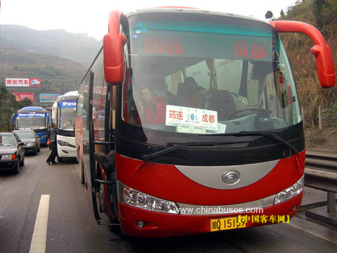再相会,当我们为这样的错过有点惋惜的时候,堵车给了我们和陈师傅又一次重逢的机会。刚上成渝高速不久,因为一起交通事故,造成了堵车现象。碰巧的是陈师傅的车和我们的车挨着停在了那里。正当我们想下车过去打招呼的时候,陈师傅已经冲到了我们车门前,交谈中没有丝毫的陌生和拘谨,也无需多余的客套。正如陈师傅笑谈中的一句话:"我们是宇通一家亲!"