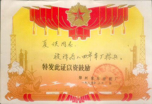 1985年奖状