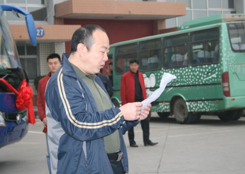 保运集团机务处副处长刘月明为仪式致开幕词,刘处长说:"非常感谢郑州宇通对我们的厚爱。保定交运集团下辖37家核心企业,固定资产9.4亿元,现有职工7000余名,拥有各类客、货运车辆1200余台,客运线路600余条,日发班次2600余个,日输送旅客8万多人次,是我国目前仅有的七家一级客运资质企业之一。保运集团与宇通集团的合作历史悠久,是宇通集团的重要战略合作伙伴之一。此次节油精英赛的举办,其实是为我们传经送宝来了。集团公司对节能减排工作一直非常重视,作为我们这样一个大型运输企业来说,一台车油耗如果能一天降低一升,那一年算下来就是几百万,这几百万是我们通过与宇通公司的合作能够省下来的,也就是宇通公司帮我们赚到的,所以我要首先感谢宇通公司。此次活动将分四天举行,希望各单位及每位参赛选手能够充分重视,比出技巧,赛出水平,使集团公司的节能减排工作更上一层楼。"