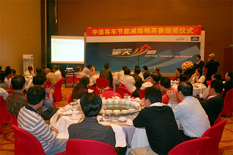 12月11日晚上6点,宇通客车节能减排精英赛颁奖仪式在海口市文华大酒店二楼宴会厅隆重举行,海口市交通局副局长、各参赛单位及参赛选手和宇通公司有关领导及工作人员齐聚一堂,祝贺宇通2007"价值连城"客户体验活动海口站比赛取得圆满成功。