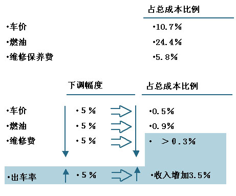 宇通通过对客运企业的研究,摸索出一个客运企业的赢利模型。以价值60万,运营里程200公里,一天3个单趟全程高速的车辆终身使用成本比例构成如下: