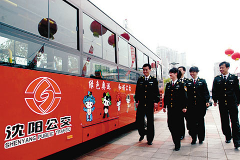 奥运会在即,市交通局将在5月、6月、7月对沈阳现有老旧破1200台公交陆续进行更新,同时还将在市民反映较强烈的高峰时段乘车拥挤的部分线路增加运力配置。其中在214路、237路、232路、240路等主干线路上配备大容量环保车辆。214路计划在7月初前后更换成13米长的车辆,每台车将比现在至少多容纳40人。