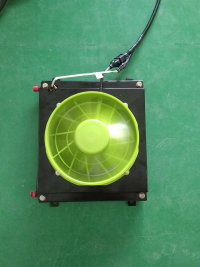 2、把有刷风扇改为无刷风扇,这项改进解决了风扇的工作寿命(工作寿命高达50000小时,五年以上),而且在同等风量下总的耗电功率比第四代下降了30%,使发动机更加节能,这款无刷风扇是自主研发的小功率无刷电机,风叶尺寸有150mm、285mm、305mm、385mm可供各种散热器厂家使用;专利号:ZL201320425317.0。