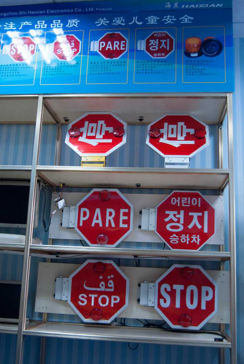 11、本公司生产的《校车停车指示牌》控制牌体打开或收回的内部开关选用光电控制,无使用寿命限止,优于同行业产品。