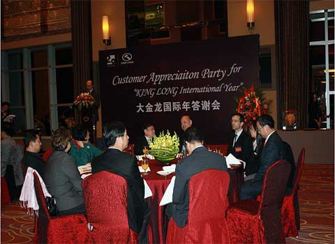 12月17日,大金龙国际年答谢会在索菲特大酒店举办,来自沙特阿拉伯、意大利、阿尔及利亚等20多个国家和地区的100多位大金龙海外客户欢聚一堂,共庆大金龙20年华诞。市委常委、常务副市长丁国炎出席答谢会并致辞。大金龙董事长孙建华、副总经理朱国强出席了当天的答谢晚宴。