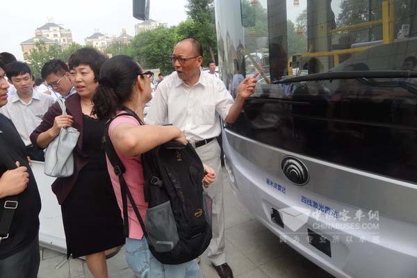 中国工程院院士、中国人工智能学会理事长李德毅向参会者介绍宇通自动驾驶客车
