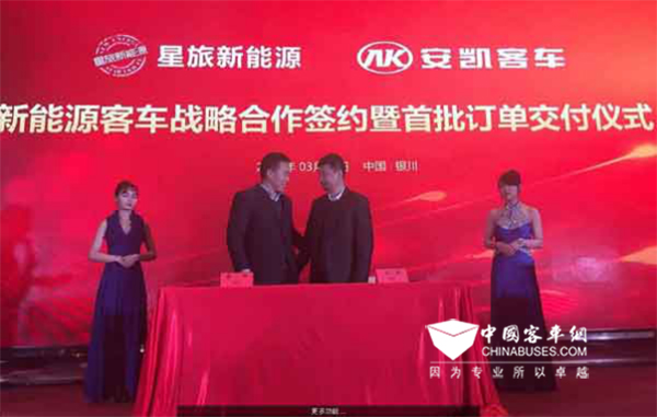 “安凯美丽中国行”第四季启动在启动仪式现场,安凯带来了4款全新的新能源代表产品,包括星巴、轻量化公交、气电混合公交和A8营运客车。同时,在各方来宾的见证下,安凯客车与陕西星旅新能源汽车有限公司签订了战略合作协议,首批订单也于当日交付,为第四季活动的全年推广创造了良好的开端。