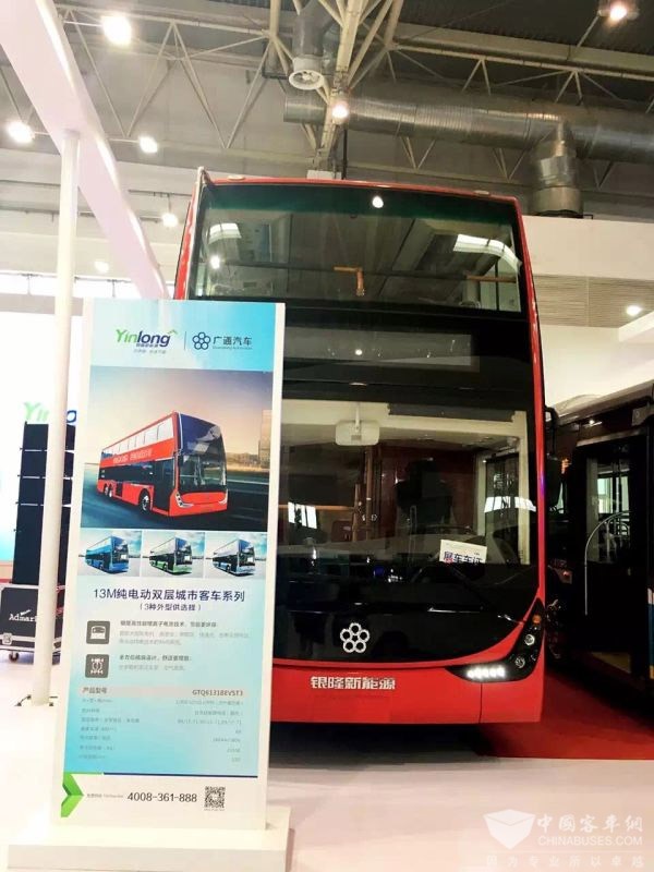 此次展会是历年来银隆新能源参展阵容最为强大的一次,包括了12米仿古铛铛车产品、12米纯电动公交车、13米双层纯电动公交车、18米纯电动公交车、纯电动MPV及纯电动SUV 6款产品,并全方位展示从钛酸锂材料、电池、电机电控、充电设备、储能到新能源车独步全球的钛酸锂技术及综合实力。