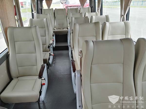 在内饰上,e-COUNTY根据东方人的体型特征,优化设计了车内空间,能为驾驶者提供最佳的驾驶感受,能为乘客提供更宽敞舒适的乘坐空间。10~23座乘员舱布局,座位数量灵活多变,充分满足于不同使用需求。