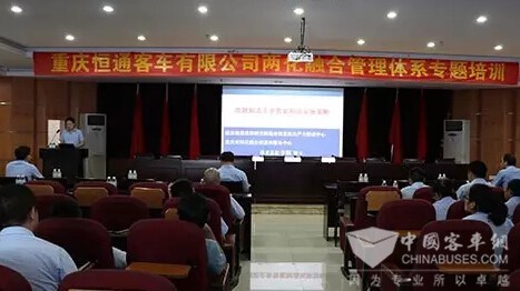 推进恒通客车两化融合,提升“智能制造”水平。根据公司两化融合推进办公室贯标工作安排,2016年8月23日在行政楼11楼大会议室举办了恒通客车“智能制造”专题培训。两化融合最高管理者何涛总经理、管理者代表雷燕副总经理以及公司高管、中层管理人员,和各部门两化融合专员,共计50余人参加了此次培训。