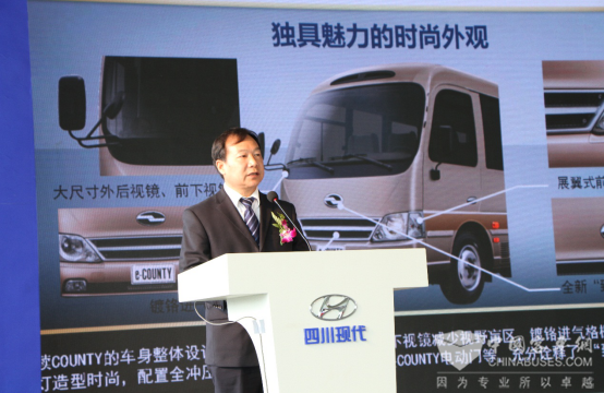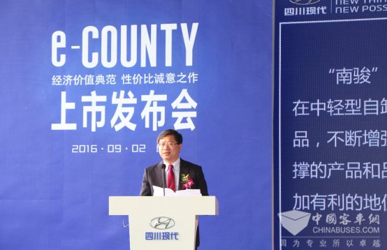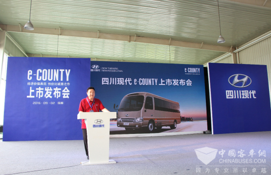 四川现代总经理辛明基在上市发布会上发表致辞说:“康恩迪上市以来,已经成为旅游及客运市场上炙手可热的高端中巴产品,实力有目共睹。目前在国内,中端市场仍是中巴的主战场,且拥有持续旺盛的用车需求。为了完善产品梯队,并满足不同层次目标群体的需求,今年我们针对中端市场特别推出了e-COUNTY新品。”