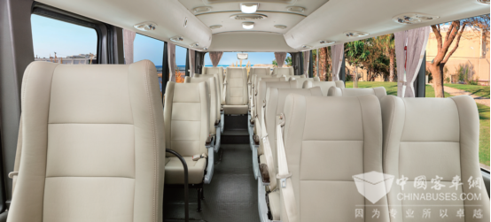 极致舒适:e-COUNTY采用以人为本的核心设计理念,全面符合人体工程学,能够为驾驶员和乘客营造舒适惬意的空间。发动机盖与变速箱检修口前移设计,营造更舒适的乘车空间;全新设计发动机舱,在满足冷却性能的前提下降低机舱高度,改善第二排座椅的乘坐舒适性;考虑到驾驶者的不同身型,方向盘采用四向调节设计,使驾驶时更加舒适;乘客座椅宽大,材质细腻,支撑感强,能够保障长途乘坐的舒适性。