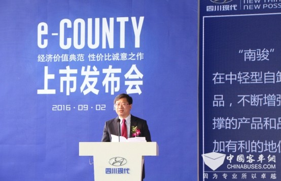 发布会上,四川现代董事长孙振田告诉XINGKONG.COM:“e-COUNTY客车,是四川现代基于现代康恩迪高端客车成熟技术,立足国内中端客车实际需求,全面优化设计后推出的第一款致道品牌客车产品。”