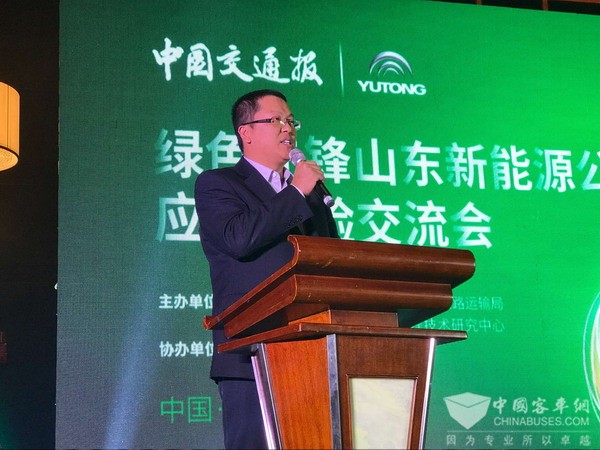 2016年10月28日,由中国交通报社、山东省交通运输厅道路运输局、国家电动客车电控与安全工程技术研究中心共同主办,宇通客车协办的“绿色先锋”山东新能源应用效果交流会在青岛举办,来自山东各地市行业管理部门、公交公司、运输企业负责人齐聚,分享新能源公交推广使用经验。