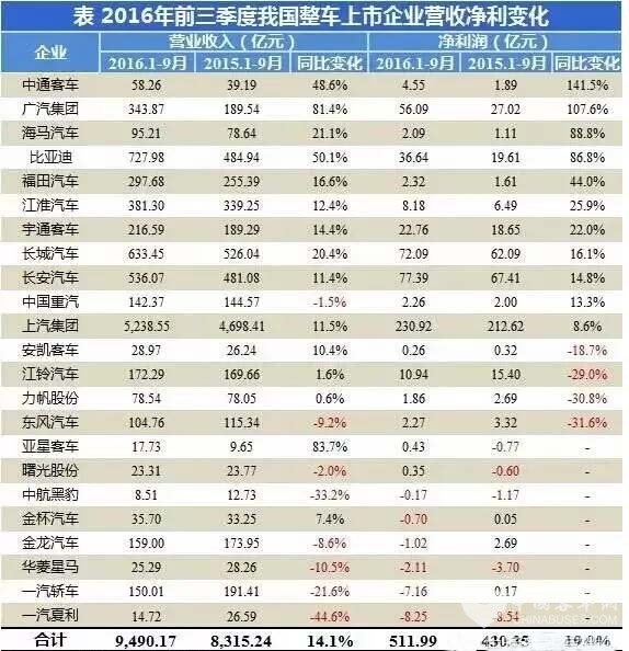 根据数据统计,24家上市的整车企业营收、净利润合计双双实现增长。其中,净利润实现增长企业中,中通客车表现最佳,前三季度净利润增幅高达141.5%,位居第一位。