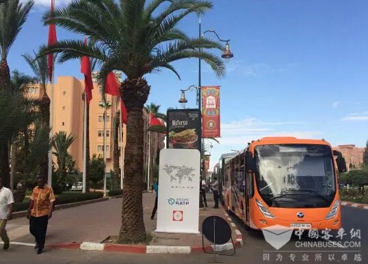 扬子江纯电动公交车在马拉喀什街道,成为一道道,一条条靓丽的风景线,赢马拉喀什市民的高回头率。中国环保局参会官员在摩洛哥乘坐中国造纯电动车非常欣喜。扬子江纯电动公交车,是中国首批成建制出口,并正常运行的纯电动公交车!