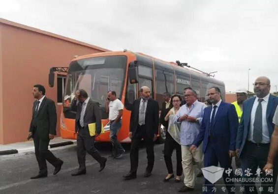 靓丽的外型、高端的品质也吸引了当地官员的目光,大区的区长在马拉喀什市市长陪同下,查看扬子江纯电动城市客车。