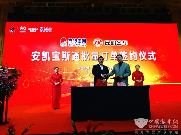 安凯客车与北京首汽集团签订30台汽油版宝斯通的大单