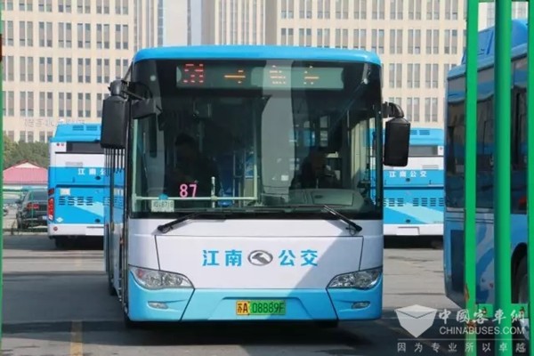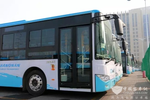 江南公交等待上新牌的金龙新能源车队