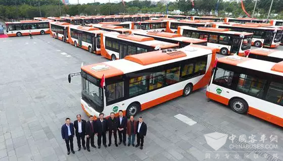 2016年11月,为广州量身打造的300台纯电动客车交付新穗巴士,从这些开拓精英们的笑脸中,看到了他们的自豪。