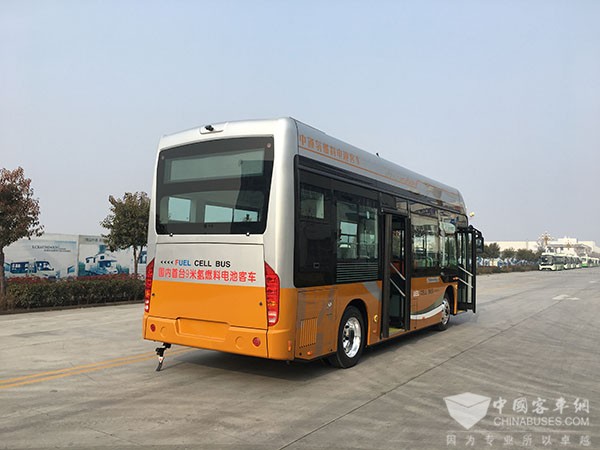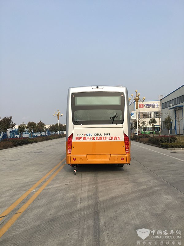 LCK6900FCEVG作为中通首台燃料电池样车,同时也是国内首台9米级燃料电池车型,电堆净输出功率超过32KW,使用寿命超过一万小时,是国内自主燃料电池技术的较高水平,样车重点设计和优化供氢系统和燃料电池的能量管理,标准工况运行续驶里程可达400公里,完全满足各级公交公司使用要求。同时,9米样车在开发之初就瞄准燃料电池技术的产业化,DC、供氢系统、电堆、整车控制器全部独立采购后由中通客车集成,通过样车装车及整车联调,中通客车在快速掌握燃料电池核心控制技术的同时,最大程度的降低了整车成本。