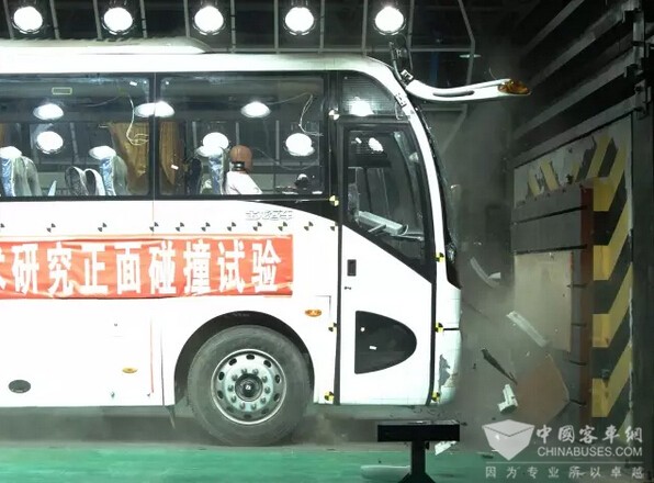 在被动安全方面,金龙客车成功自主研发出了全承载车身技术、3H高强度车身、防撞溃缩机构等被动安全技术,有效提升车身整体结构的安全性能。“正面第一碰”试验就是金龙客车近年来开展客车被动安全研究最具代表性的典型案例。