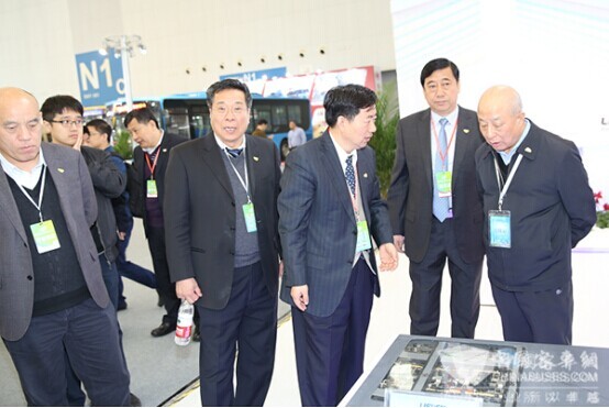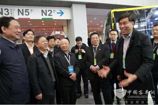 宇通客车国内营销总监王建军与参观的领导和公交代表交谈甚欢