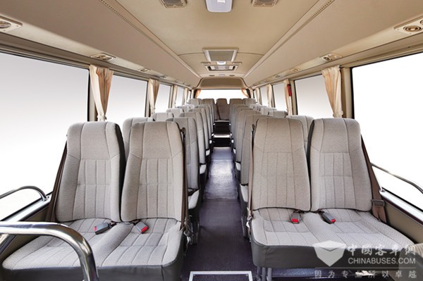 空间方面,D8延续了深受用户喜爱的考斯特经典造型,外观圆润大气,并基于稳定成熟的平台升级扩展,车身长度从原先7米延长到8米,宽度也从2.05米变成2.28米,不但车内空间宽敞,前置的上客门通过性也更好。同时,座位数从原来7米考斯特的23座提高到最多33+1,公交版的乘客人数更可达到44人,整体上给乘客带来超级宽敞的空间感。