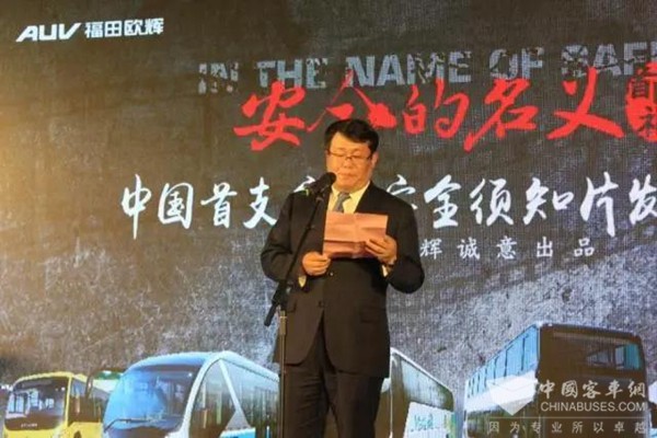 发布仪式由电视剧《人民的名义》中的一段情节代入情景,充分体现了此部客车安全须知片是以“用户的名义”来诠释乘车安全注意事项。随后,中国公路学会客车分会副秘书长佘振清先生、北京新能源汽车产业协会副会长兼秘书长赵景光先生以及福田汽车集团副总裁欧辉客车事业部党委书记总经理范现军先生分别上台致辞。领导嘉宾对福田欧辉此次创举表示充分的肯定和由衷的赞叹。