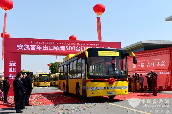 2017年5月10日,也就是首个“中国品牌日”设立当天,安凯客车“走出去”步伐再度提速,500台代表中国制造水准的高品质燃气客车批量交付缅甸仰光公共巴士有限公司,成为了一带一路发展过程中,中缅建立友好关系的一项重要成果,同时为首个“中国品牌日”献上一份大礼,堪称“中国品牌”客车通行全球的一个缩影和见证。
